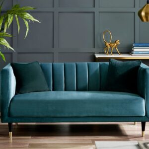 The Salma Scalloped Back 3 Seater is a stylish and space-saving sofa, featuring a luxe fluted back velvet upholstery and brass-tipped legs. Its sleek, elegant design will bring cosiness and elegance to any living room, coming in teal or grey options.